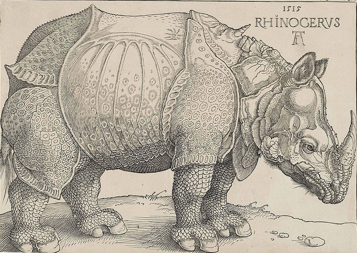Pour l'histoire du rhinocéros par l'immense Albrecht Dürer qui illustre mon propos, vous trouverez tout ce qu'il faut dans cette brève video en provenance du château de Chantilly :